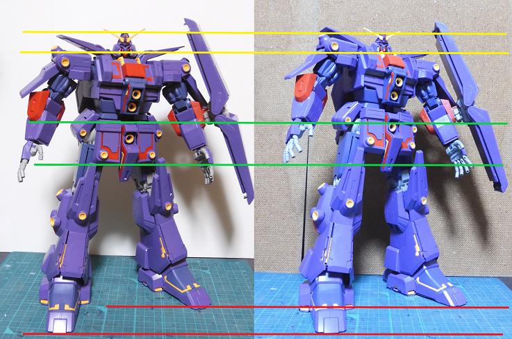 足元の位置(赤線)とアタマ(黄色線)がほぼ一緒の状態で