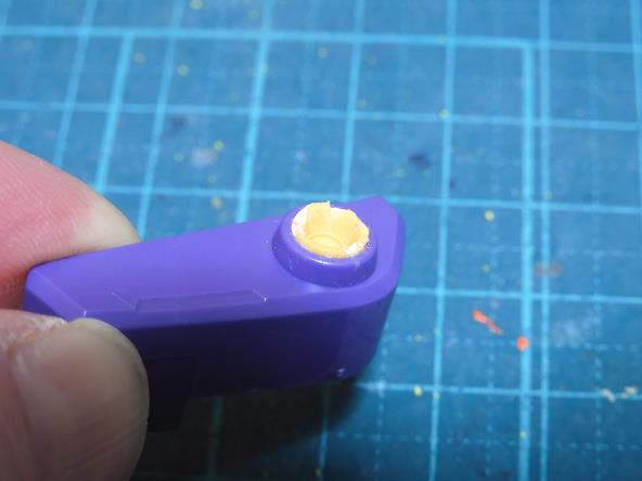 黄色パーツを傷つけないようにドリルで穴を開けて押し出し。