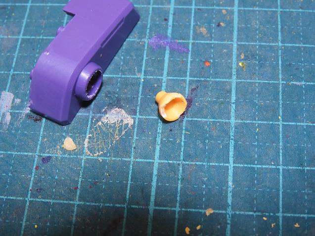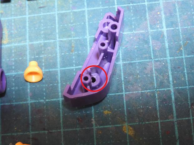穴にはめ込んでしまった「黄色い噴射口パーツ」です。