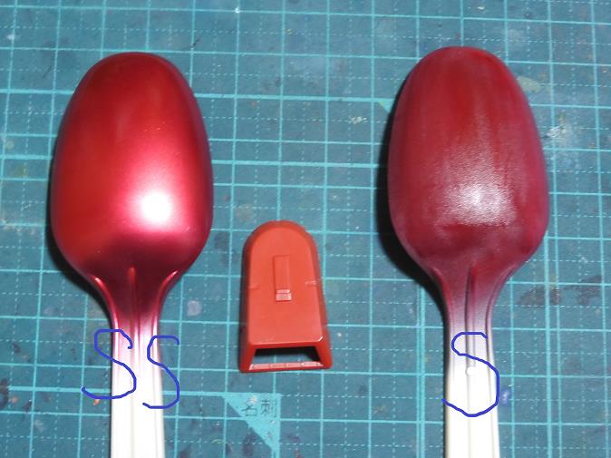 右が「シルバー」ベースで「クリアレッド」2度塗り