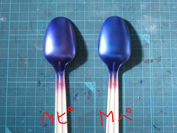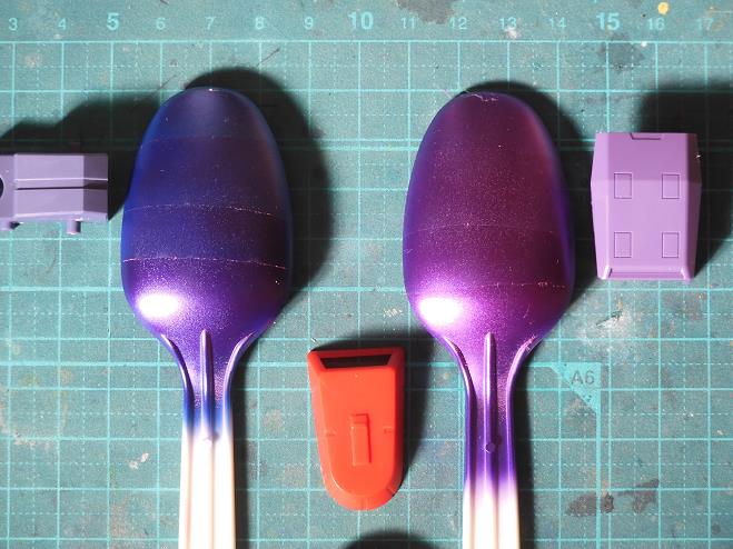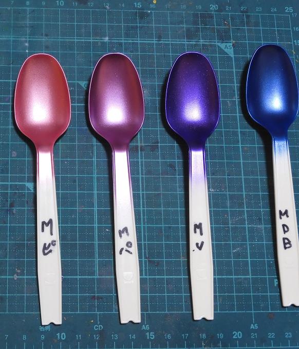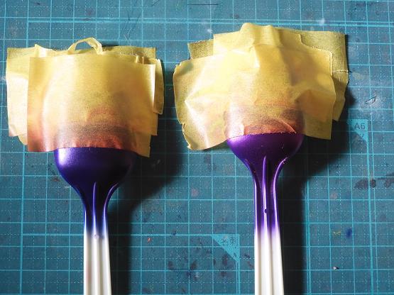 クリアピンク重ね塗り2回目(左がMバイオレット、右がMDブルー)